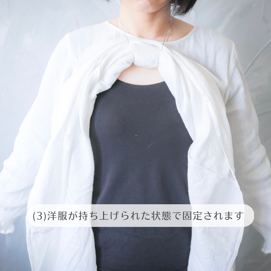 (3)洋服が持ち上げられた状態で固定されます。