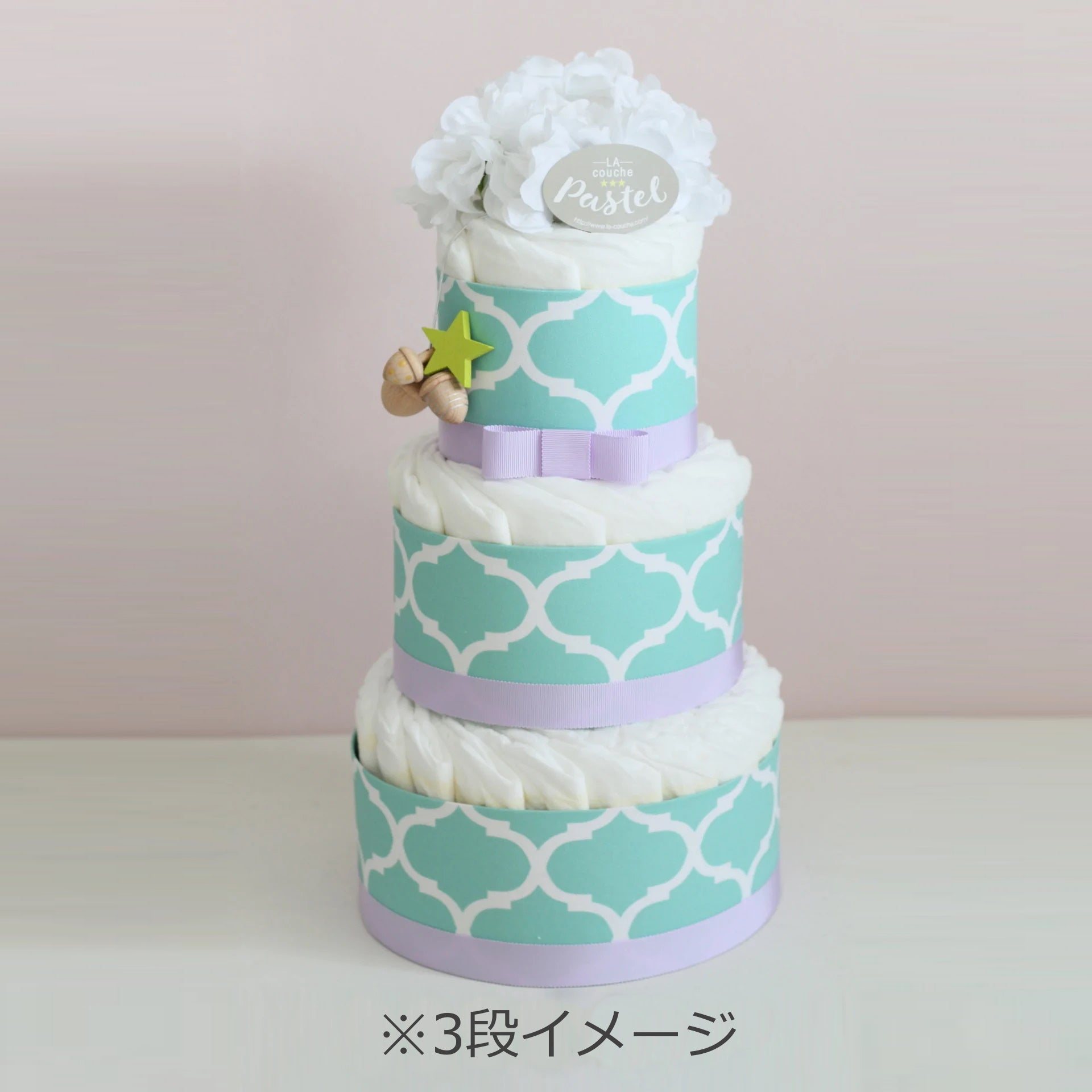 ※Mサイズ(6〜11kg)、3段ケーキへの変更は別途オーダーで承ります。変更後のおむつの枚数は変わります。(※有料)