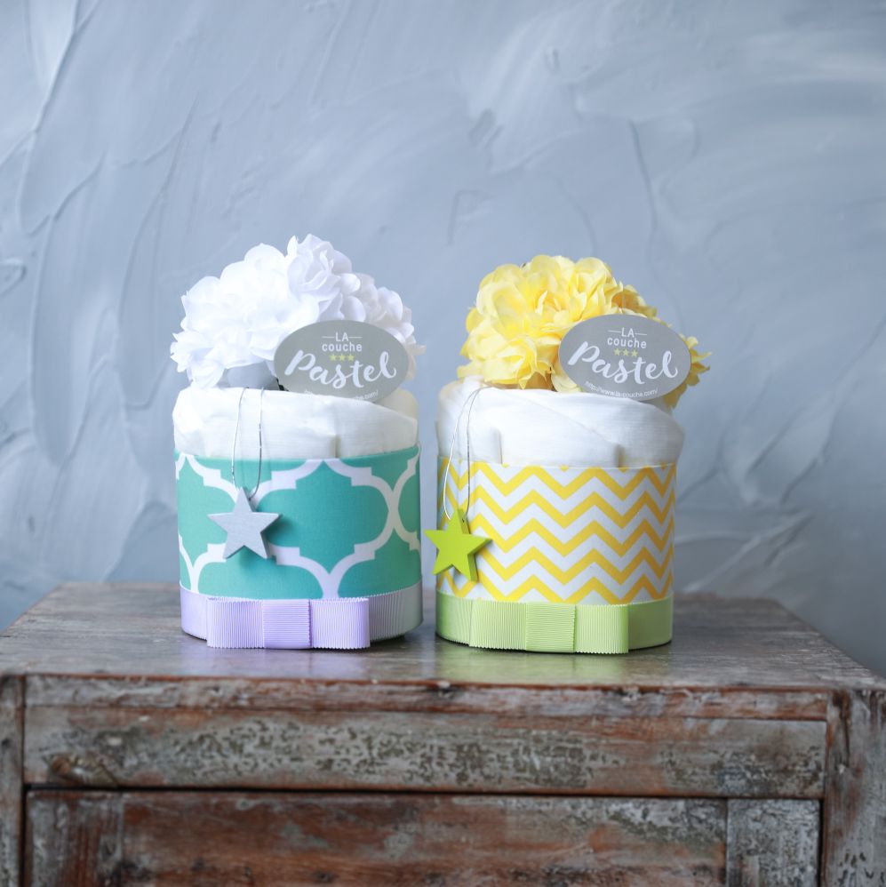 Kiko+の木のアクセサリー付きオーガニックダイパーケーキ(おむつケーキ)1段/全5色